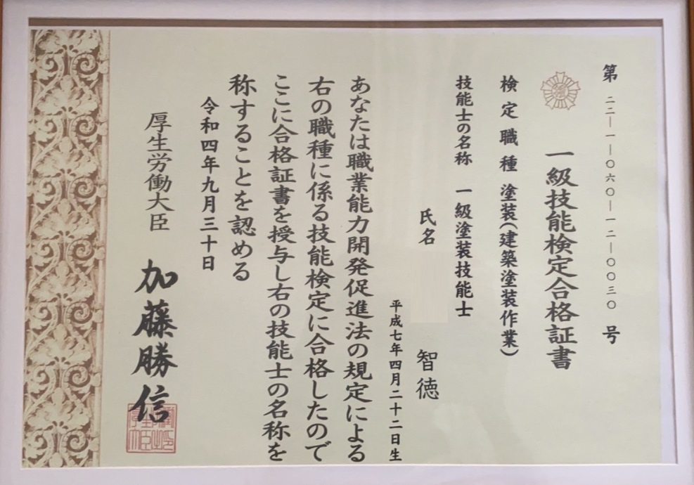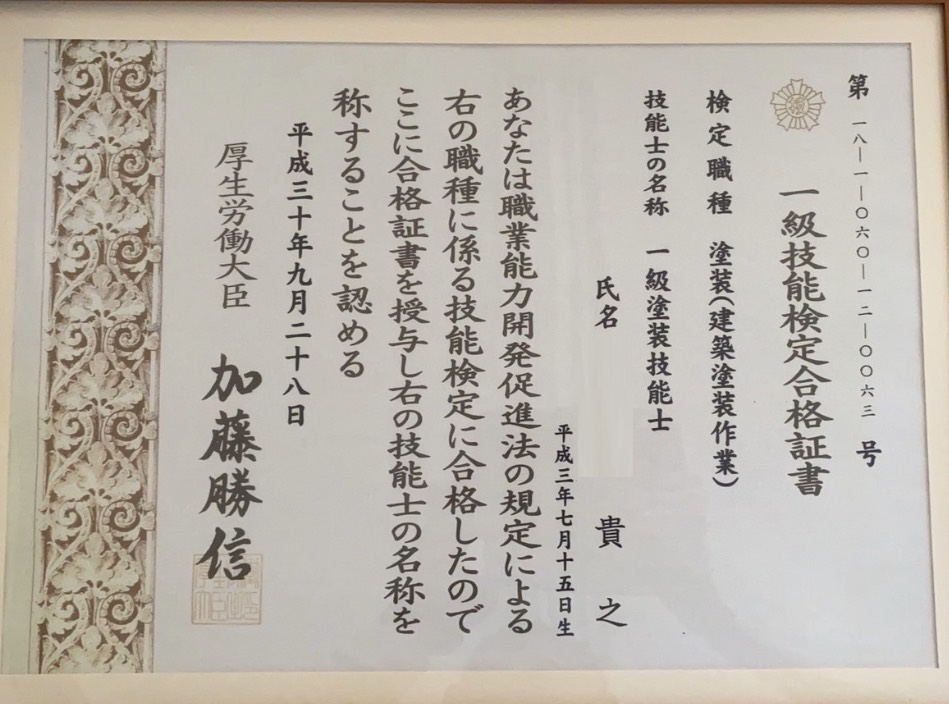 個人情報保護の観点から、合格証の本名を隠して掲載しております。予めご了承ください。
